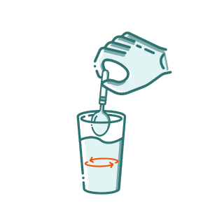 Step 2Stir the natural herbs into the water with a teaspoon.